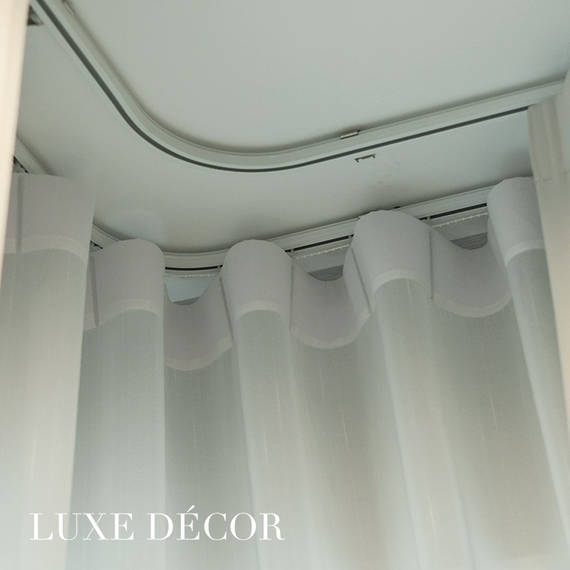 รูปแบบ : รางโค้ง เป็นราง Slide รุ่นพิเศษสำหรับผ้าม่านลอน หรือ ผ้าม่านจีบในบริเวณที่เป็นกระจกมุมห้องเพื่อป้องกันแสงแดด และ เพิ่มดีไซน์ให้ห้องดูสวยงามมากขึ้น